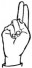 На ћирилици написано ЊЕГОСЛАВ ТРИФУНОВИЋ састоји се из 18 слова [?]. Исписано ћириличном једноручном азбуком за глувонеме: